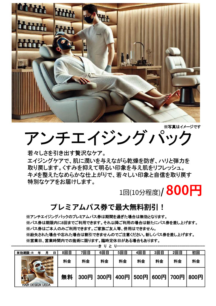 ※アンチエイジングパックのプレミアムパス券は期間を過ぎた場合は無効となります。