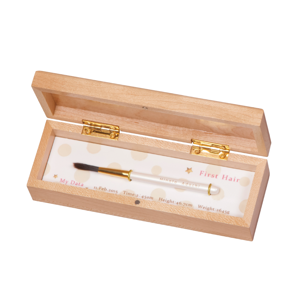 赤ちゃんの髪は一度しかない大切な成長の証。柔らかく繊細な髪を職人が丁寧に加工し、美しい筆へと仕上げます。特に小筆のように仕上げたものは実用性もあり、書道や飾りとしても楽しむことができます。また、専用の桐箱や名入れオプションも選べるため、世界にひとつだけのオリジナル記念品が完成します。