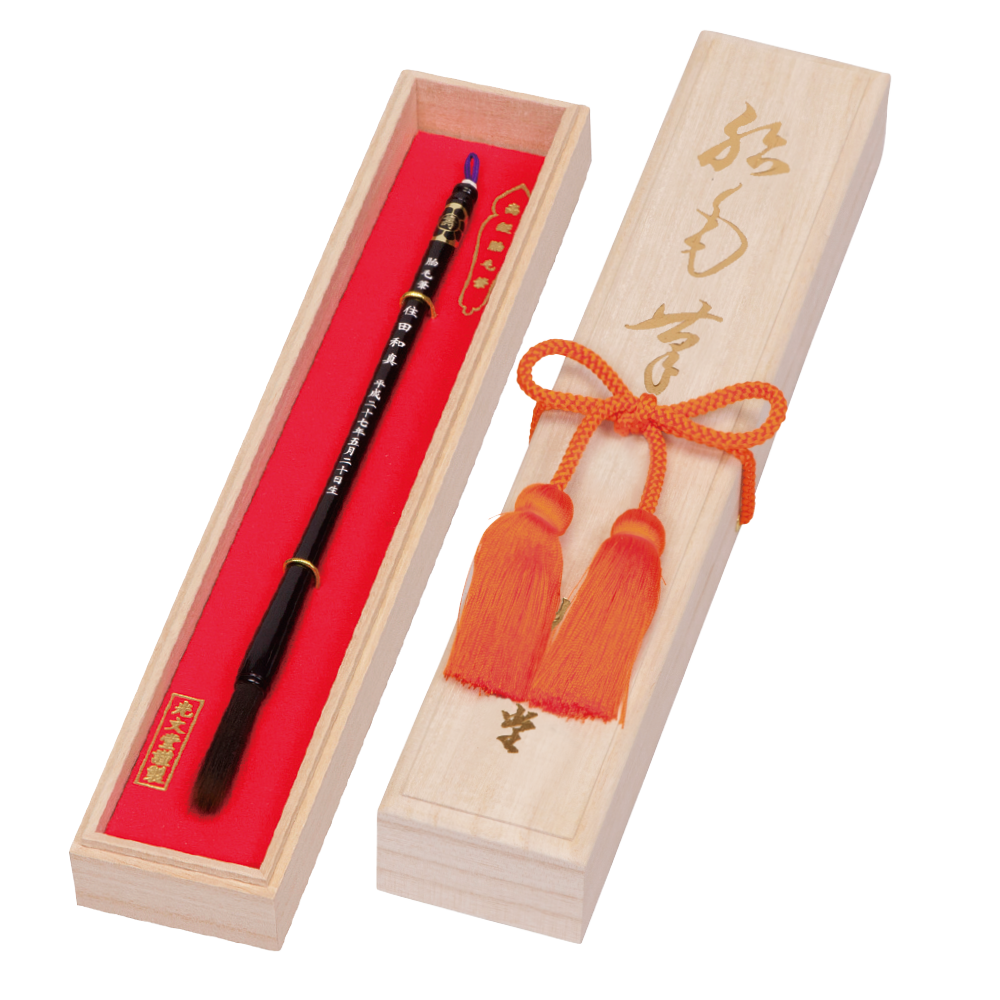 完成した筆を専用のケースやパッケージに入れてお渡しいたします。お子さまの大切な記念品として、世界にひとつだけの赤ちゃん筆が出来上がります。